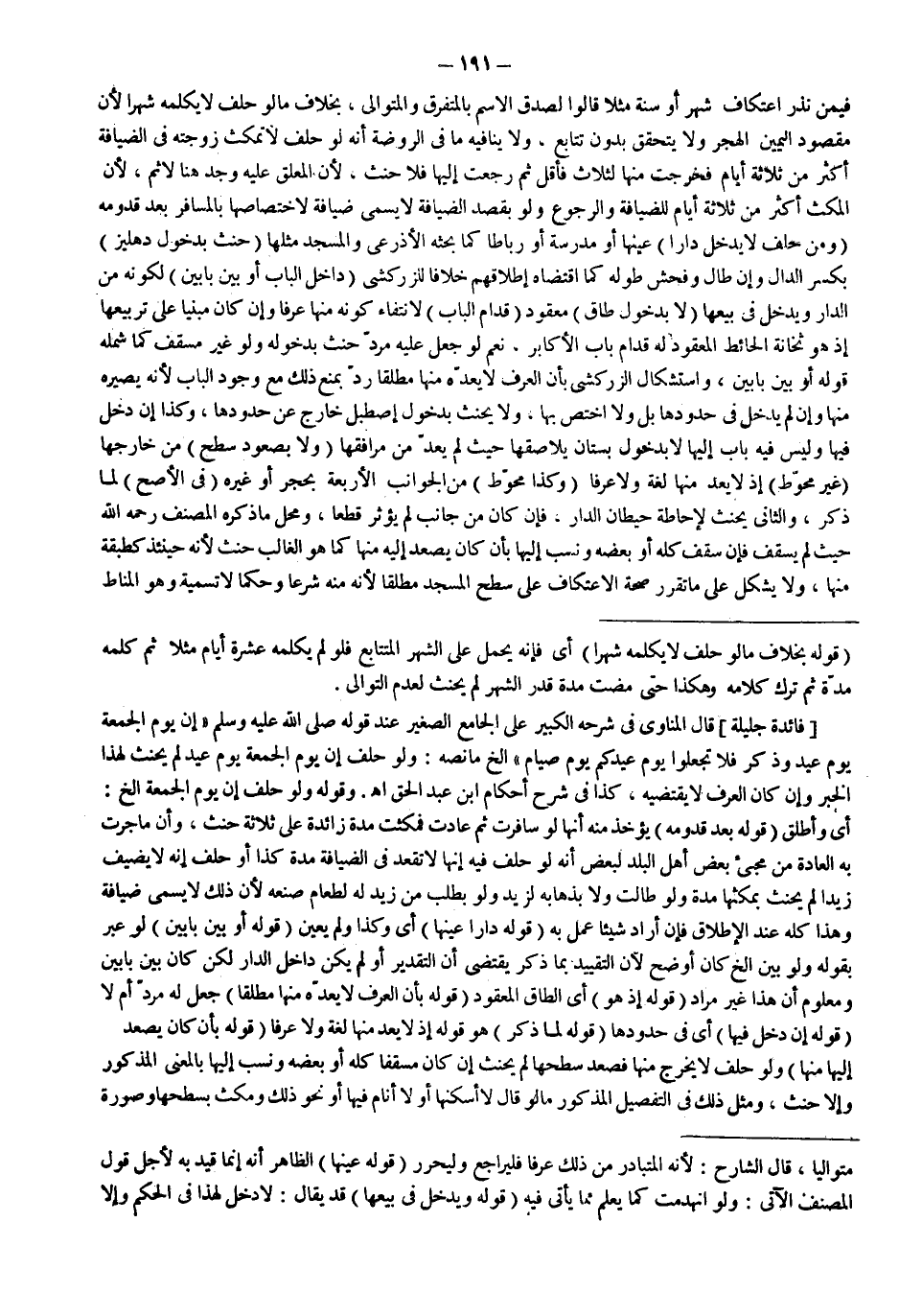 [فَائِدَةٌ جَلِيلَةٌ] قَالَ الْمُنَاوِيُّ فِي شَرْحِهِ الْكَبِيرِ عَلَى الْجَامِعِ الصَّغِيرِ عِنْدَ قَوْلِهِ - صَلَّى اللَّهُ عَلَيْهِ وَسَلَّمَ - «إنَّ يَوْمَ الْجُمُعَةِ يَوْمُ عِيدٍ وَذِكْرٍ فَلَا تَجْعَلُوا يَوْمَ عِيدِكُمْ يَوْمَ صِيَامٍ» إلَخْ مَا نَصُّهُ: وَلَوْ حَلَفَ إنَّ يَوْمَ الْجُمُعَةِ يَوْمُ عِيدٍ لَمْ يَحْنَثْ لِهَذَا الْخَبَرِ وَإِنْ كَانَ الْعُرْفُ لَا يَقْتَضِيهِ، كَذَا فِي شَرْحِ أَحْكَامِ ابْنِ عَبْدِ الْحَقِّ اهـ.
