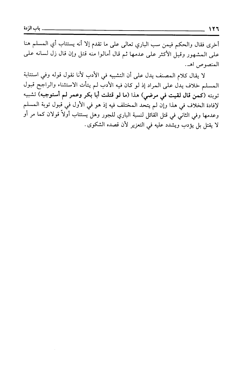 أخرى فقال والحكم فيمن سب الباري تعالى على ما تقدم إلا أنه يستتاب أي المسلم هنا على المشهور وقيل الأكثر على عدمها ثم قال أمالوا منه قتل وإن قال زل لسانه على المنصوص اهـ.
