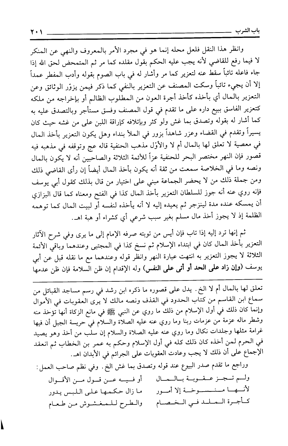 ولم تجز عقوبة بالمال ... أو فيه عن قول من الأقوال