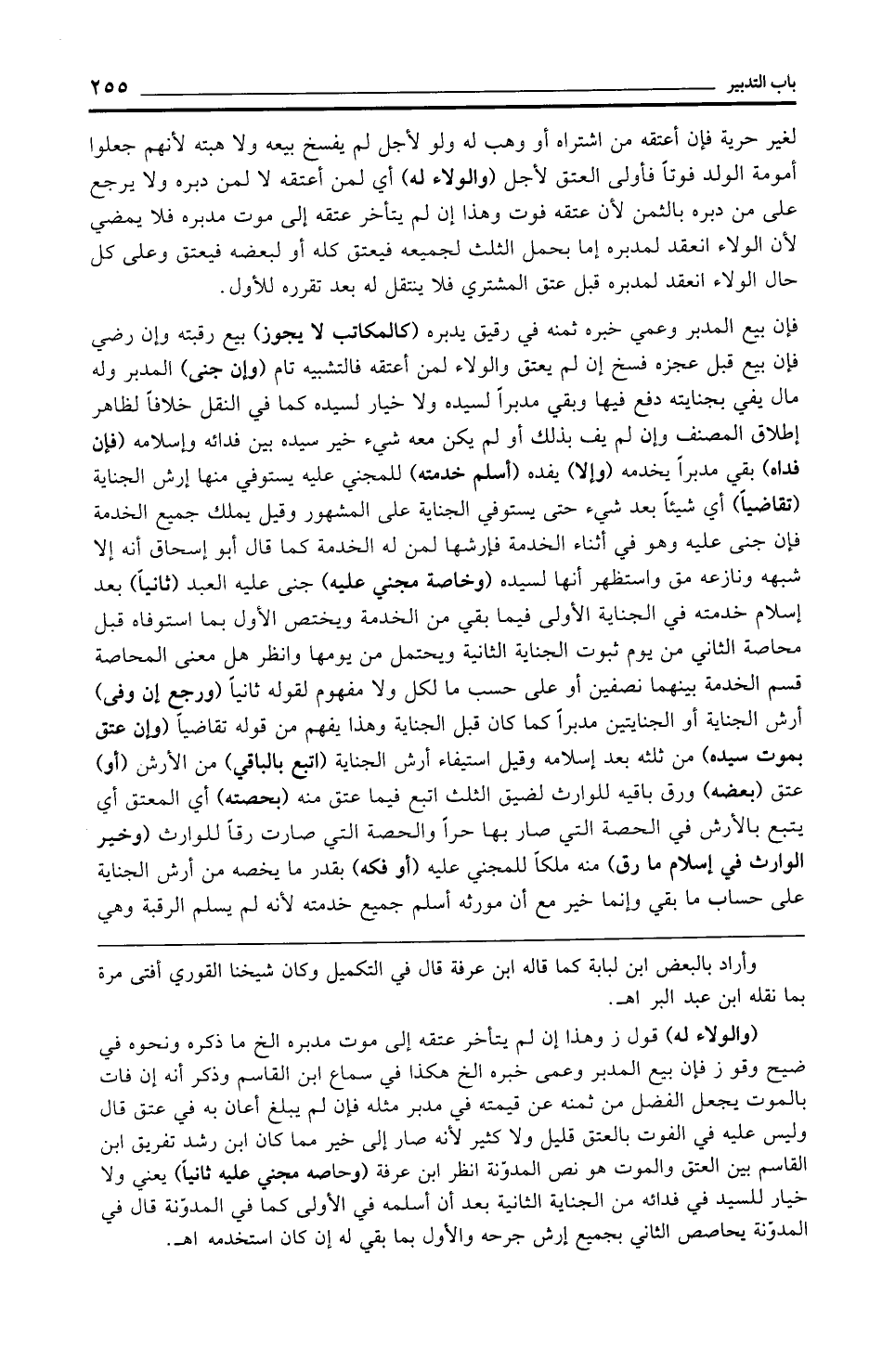 (والولاء له) قول ز وهذا إن لم يتأخر عتقه إلى موت مدبره الخ ما ذكره ونحوه في ضيح وقول ز فإن بيع المدبر وعمى خبره الخ هكذا في سماع ابن القاسم وذكر أنه إن فات بالموت يجعل الفضل من ثمنه عن قيمته في مدبر مثله فإن لم يبلغ أعان به في عتق قال وليس عليه في الفوت بالعتق قليل ولا كثير لأنه صار إلى خير مما كان ابن رشد تفريق ابن القاسم بين العتق والموت هو نص المدوّنة انظر ابن عرفة (وحاصه مجني عليه ثانيًا) يعني ولا خيار للسيد في فدائه من الجناية الثانية بعد أن أسلمه في الأولى كما في المدوّنة قال في المدوّنة يحاصص الثاني بجميع إرش جرحه والأول بما بقي له إن كان استخدمه اهـ.