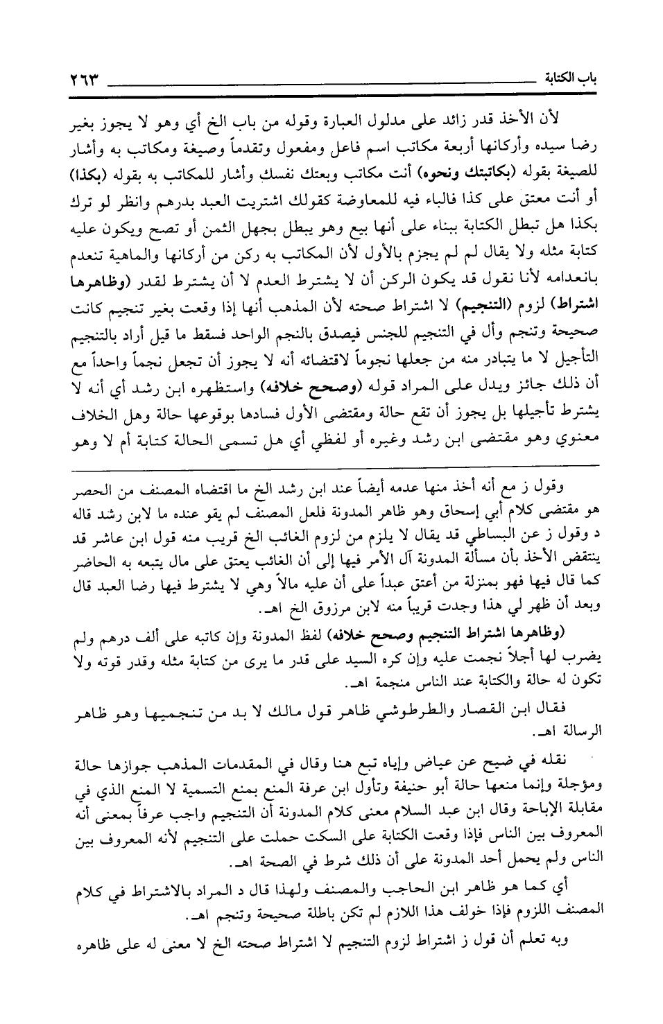 فقال ابن القصار والطرطوشي ظاهر قول مالك لابد من تنجميها وهو ظاهر الرسالة اهـ.