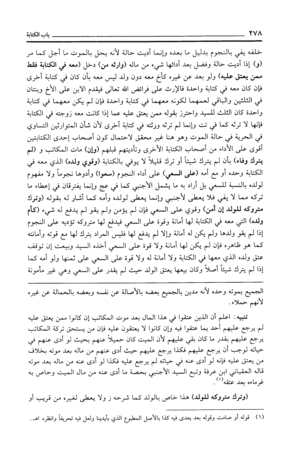 تنبيه: اعلم أن الذين عتقوا في هذا المال بعد موت المكاتب إن كانوا ممن يعتق عليه لم يرجع عليهم أحد بما عتقوا فيه وإن كانوا لا يعتقون عليه فإن من يستحق تركة المكاتب يرجع عليهم بقدر ما كان بقي عليهم لأن الميت كان حميلًا عنهم بحيث لو أدى عنهم في حياته لوجب أن يرجع عليهم فكذا يرجع عليهم حيث أدى عنهم من ماله بعد موته بخلاف من يعتق عليه فإنه لو أدى عنه في حياته لم يرجع عليه فكذا لو أدى عنه من ماله بعد موته قاله العقباني ابن عرفة وتبع السيد الأجنبي بحصة ما أدى عنه من مال الميت وحاص به غرماءه بعد عتقه (¬1).