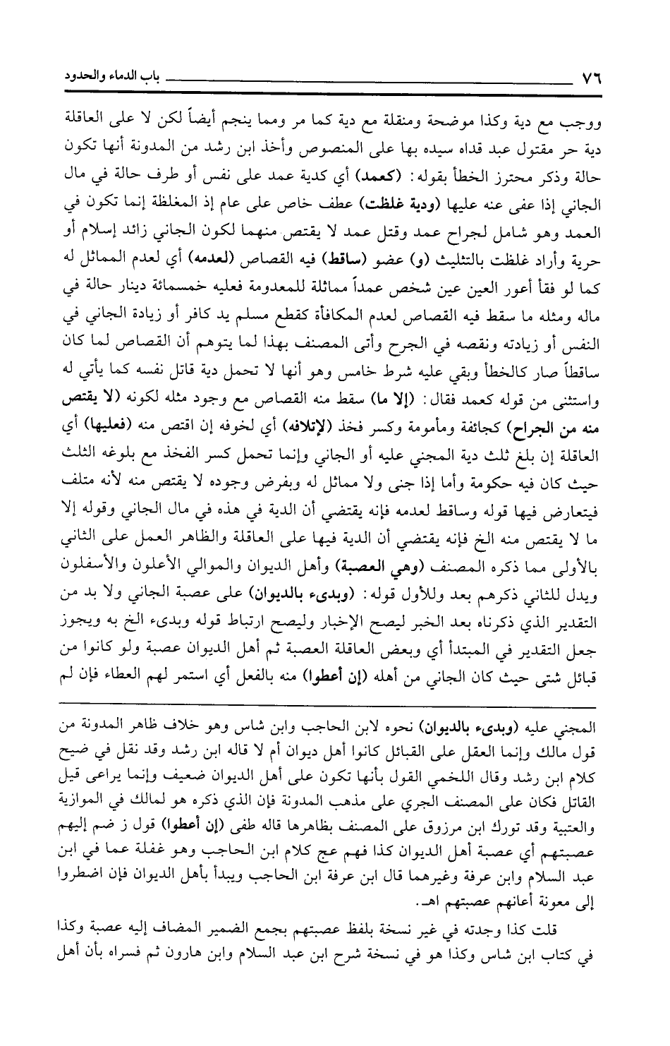 قلت كذا وجدته في غير نسخة بلفظ عصبتهم بجمع الضمير المضاف إليه عصبة وكذا في كتاب ابن شاس وكذا هو في نسخة شرح ابن عبد السلام وابن هارون ثم فسراه بأن أهل