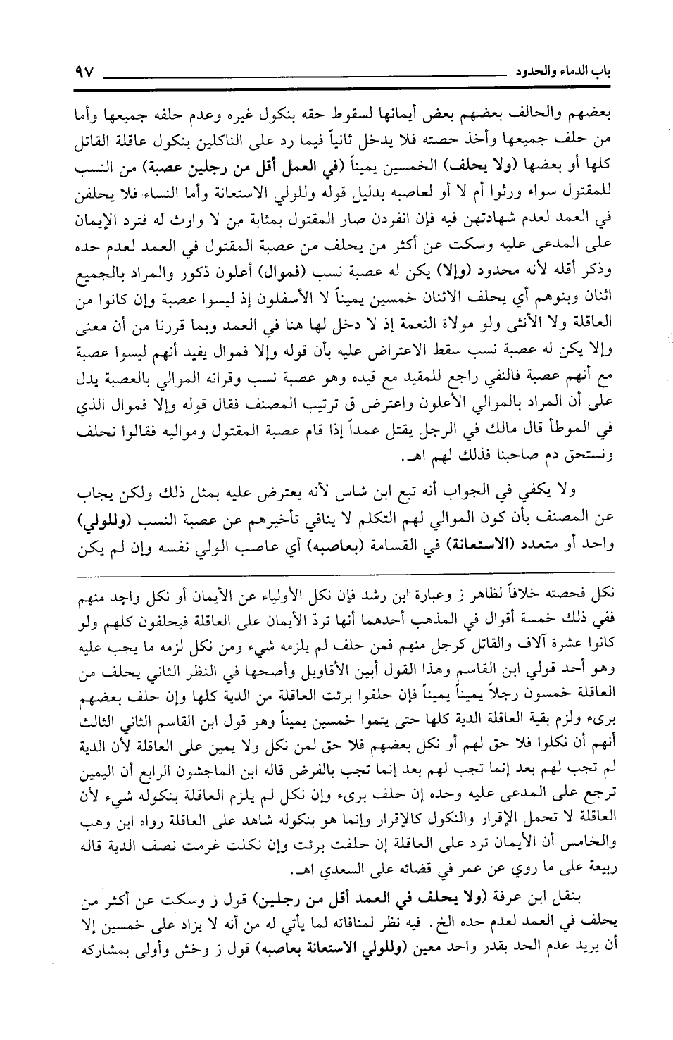 بنقل ابن عرفة (ولا يحلف في العمد أقل من رجلين) قول ز وسكت عن أكثر من يحلف في العمد لعدم حده الخ. فيه نظر لمنافاته لما يأتي له من أنه لا يزاد على خمسين إلا أن يريد عدم الحد بقدر واحد معين (وللولي الاستعانة بعاصبه) قول ز وخش وأولى بمشاركه