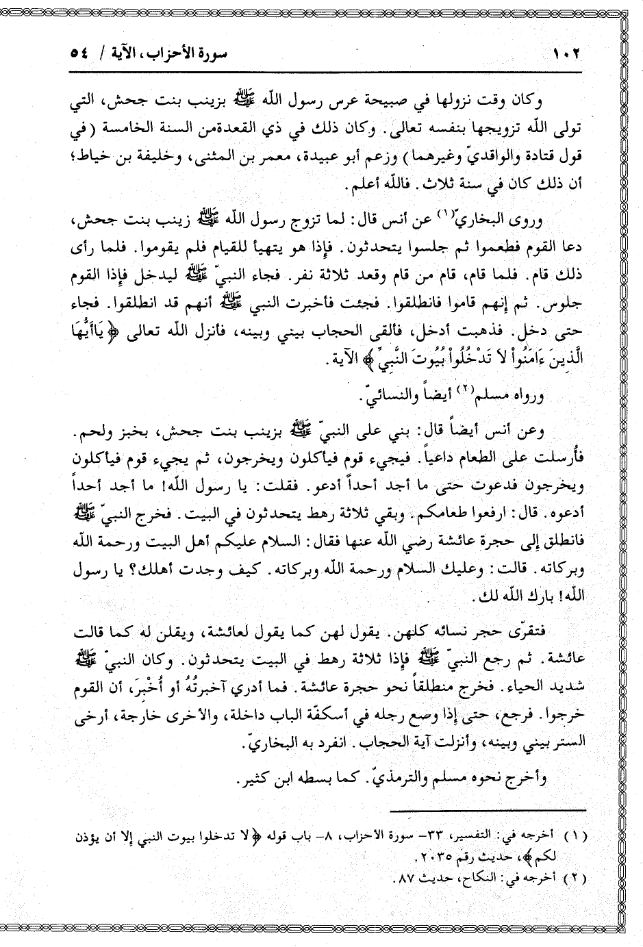 (1) أخرجه في: التفسير، 33- سورة الأحزاب، 8- باب قوله لا تَدْخُلُوا بُيُوتَ النَّبِيِّ إِلَّا أَنْ يُؤْذَنَ لَكُمْ، حديث رقم 2035.