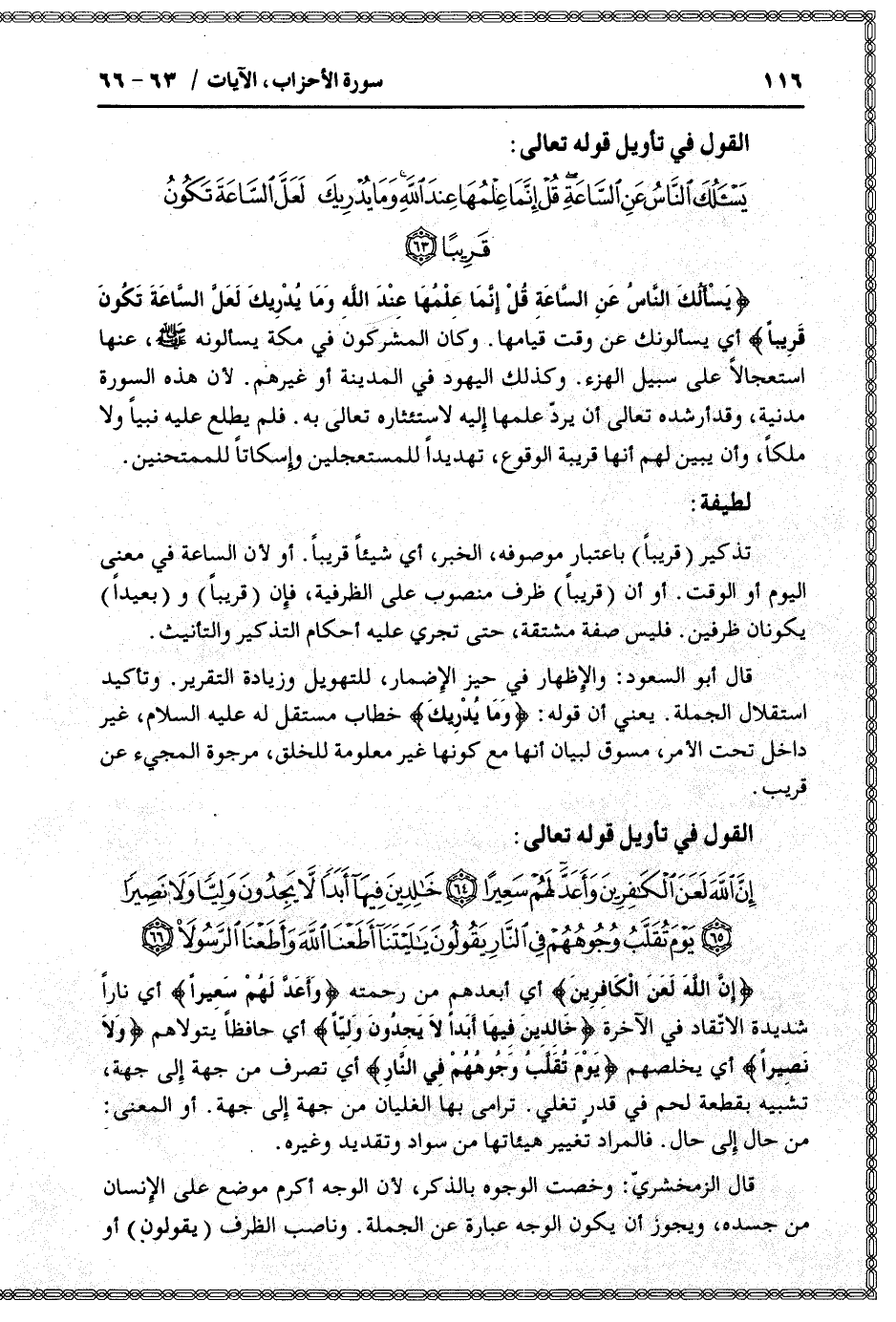 القول في تأويل قوله تعالى: [سورة الأحزاب (33) : آية 63]