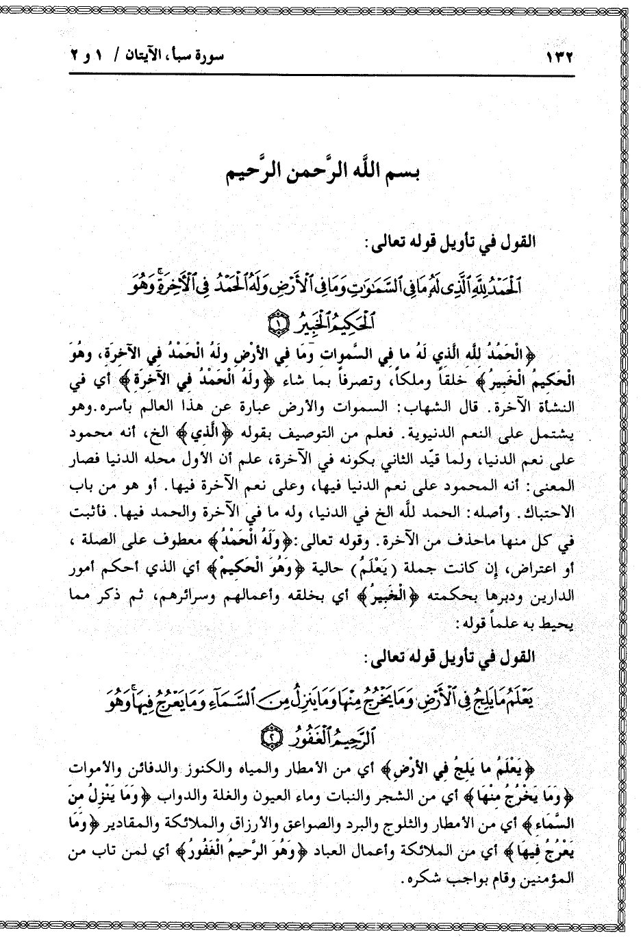 القول في تأويل قوله تعالى: [سورة سبإ (34) : آية 1]