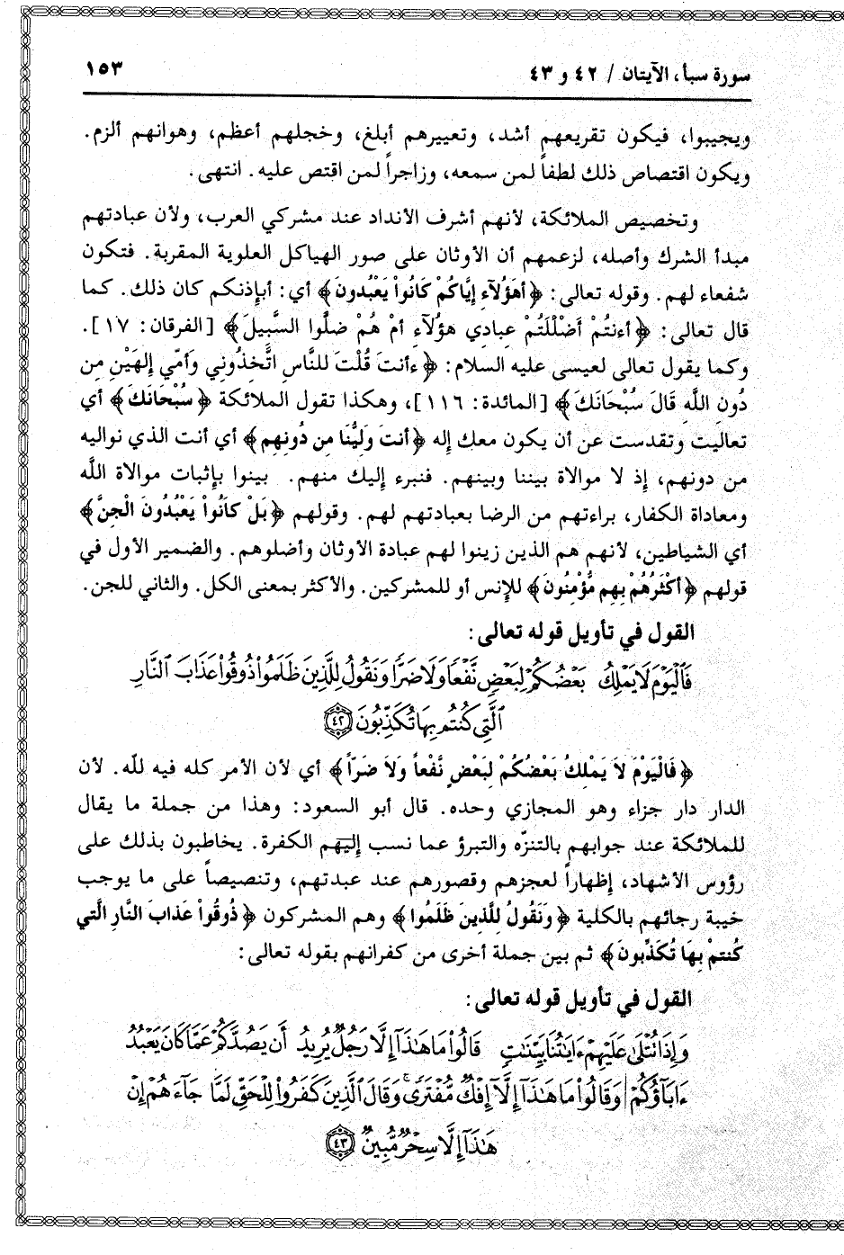 وَإِذا تُتْلى عَلَيْهِمْ آياتُنا بَيِّناتٍ قالُوا ما هذا إِلاَّ رَجُلٌ يُرِيدُ أَنْ يَصُدَّكُمْ عَمَّا كانَ يَعْبُدُ آباؤُكُمْ وَقالُوا ما هذا إِلاَّ إِفْكٌ مُفْتَرىً وَقالَ الَّذِينَ كَفَرُوا لِلْحَقِّ لَمَّا جاءَهُمْ إِنْ هذا إِلاَّ سِحْرٌ مُبِينٌ (43)
