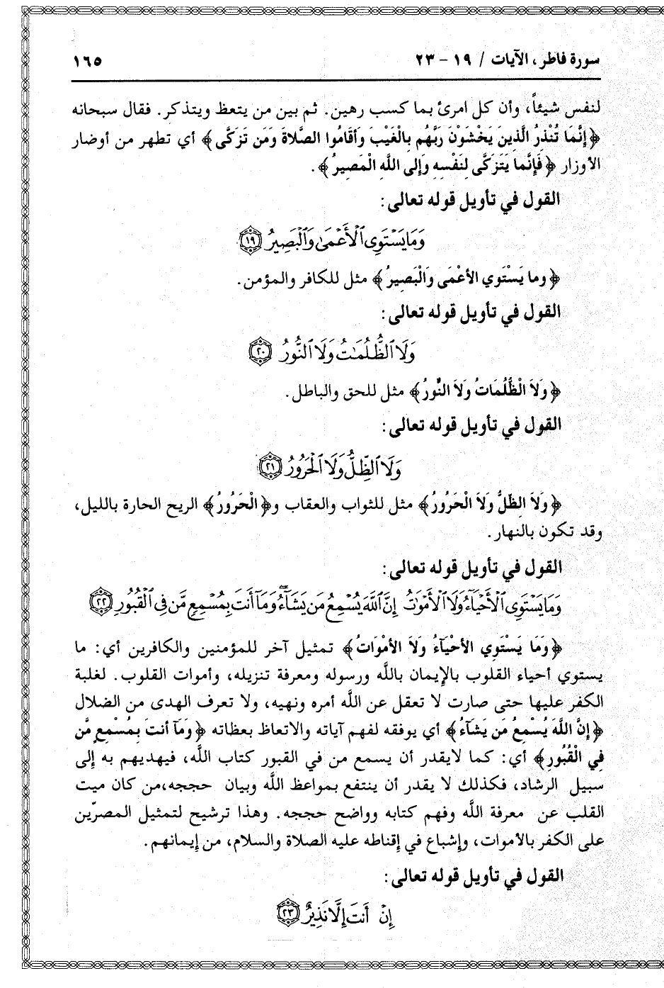القول في تأويل قوله تعالى: [سورة فاطر (35) : آية 19]