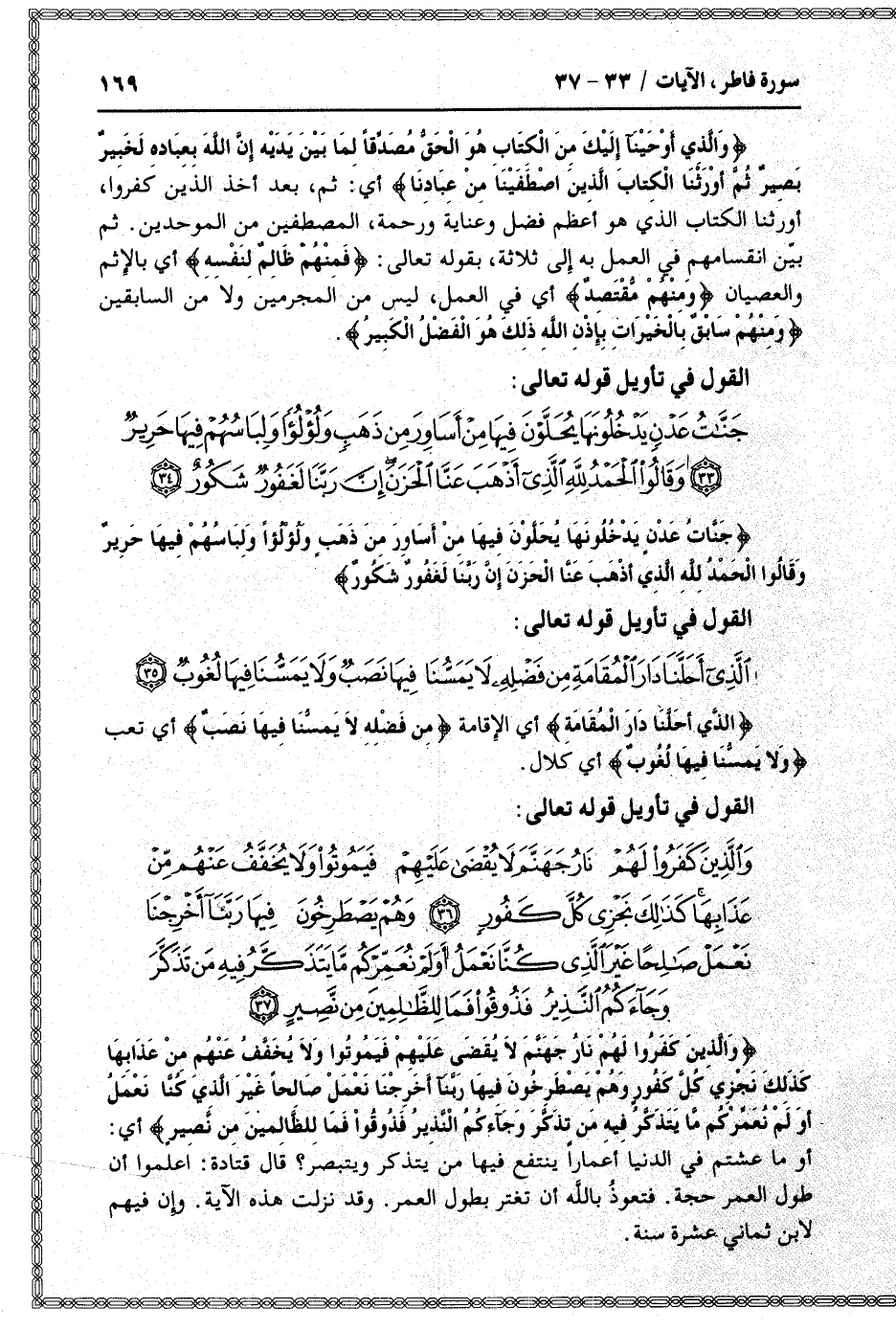 القول في تأويل قوله تعالى: [سورة فاطر (35) : الآيات 33 الى 34]