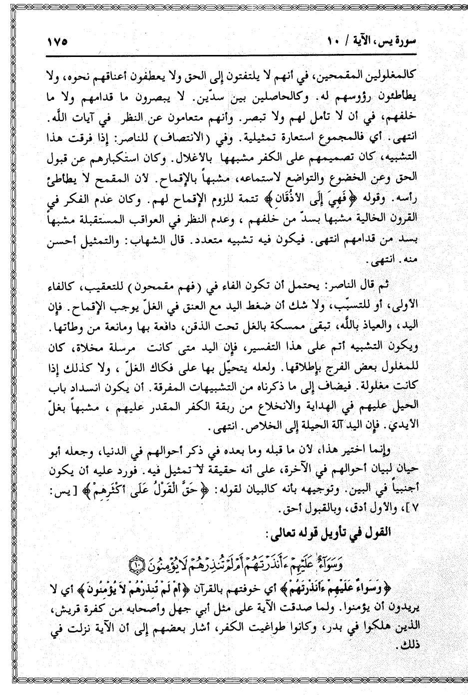 القول في تأويل قوله تعالى: [سورة يس (36) : آية 10]