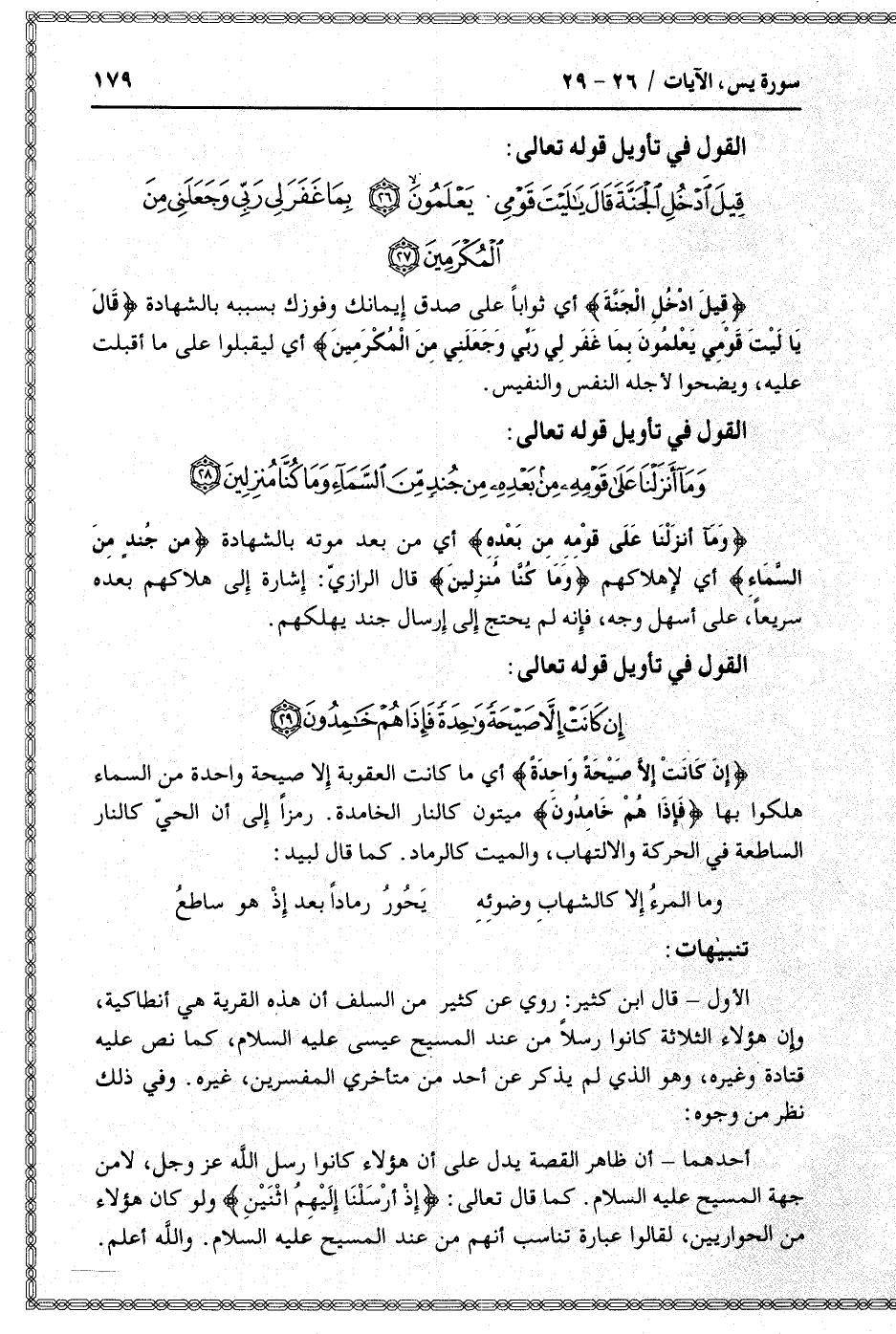 قِيلَ ادْخُلِ الْجَنَّةَ قالَ يا لَيْتَ قَوْمِي يَعْلَمُونَ (26) بِما غَفَرَ لِي رَبِّي وَجَعَلَنِي مِنَ الْمُكْرَمِينَ (27)