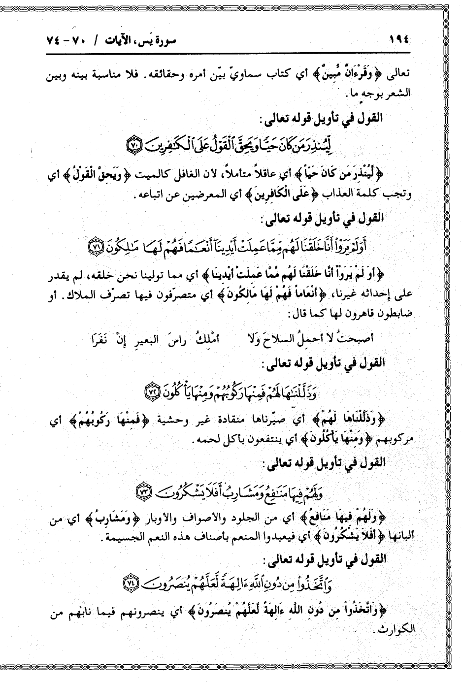 القول في تأويل قوله تعالى: [سورة يس (36) : آية 74]