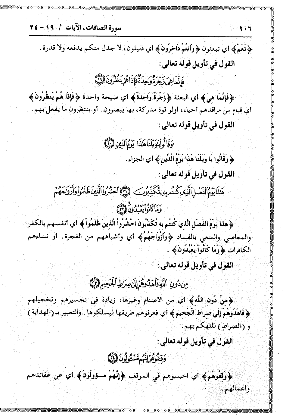 القول في تأويل قوله تعالى: [سورة الصافات (37) : آية 24]