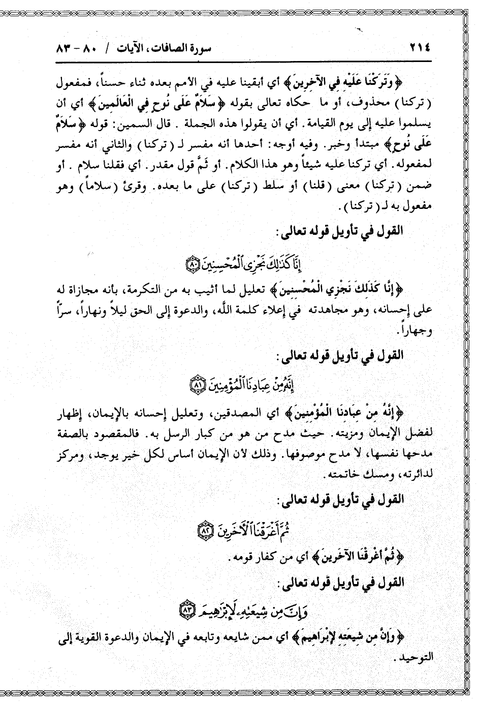 القول في تأويل قوله تعالى: [سورة الصافات (37) : آية 80]