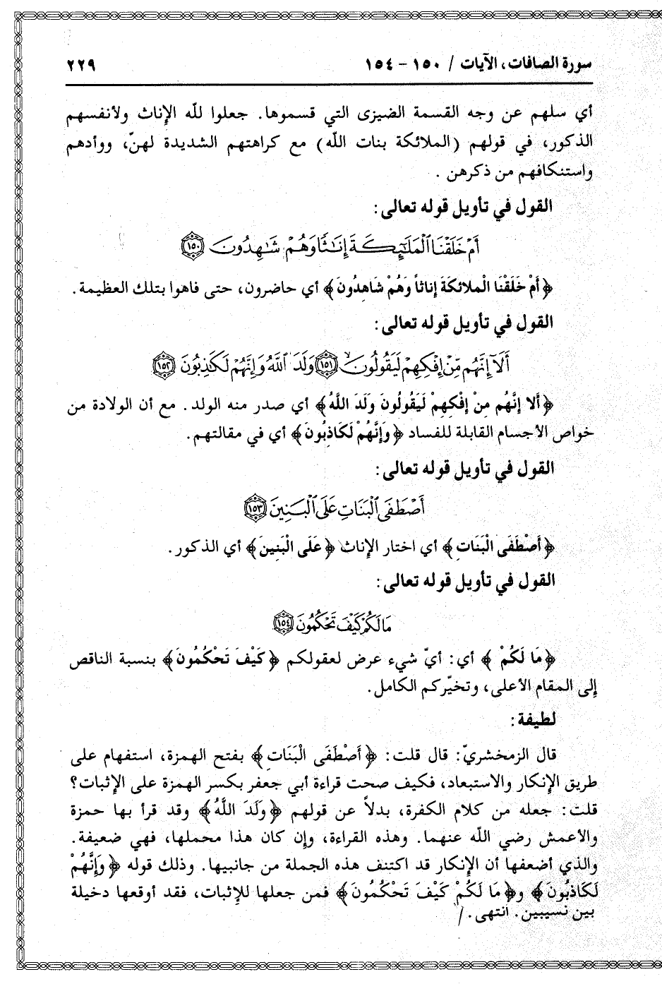 أَمْ خَلَقْنَا الْمَلائِكَةَ إِناثاً وَهُمْ شاهِدُونَ (150)