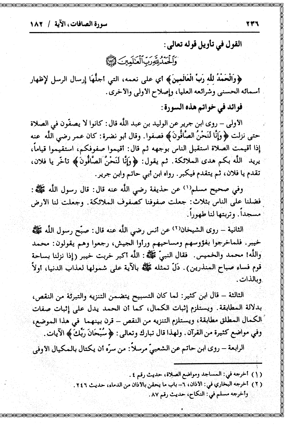 وَالْحَمْدُ لِلَّهِ رَبِّ الْعالَمِينَ (182)