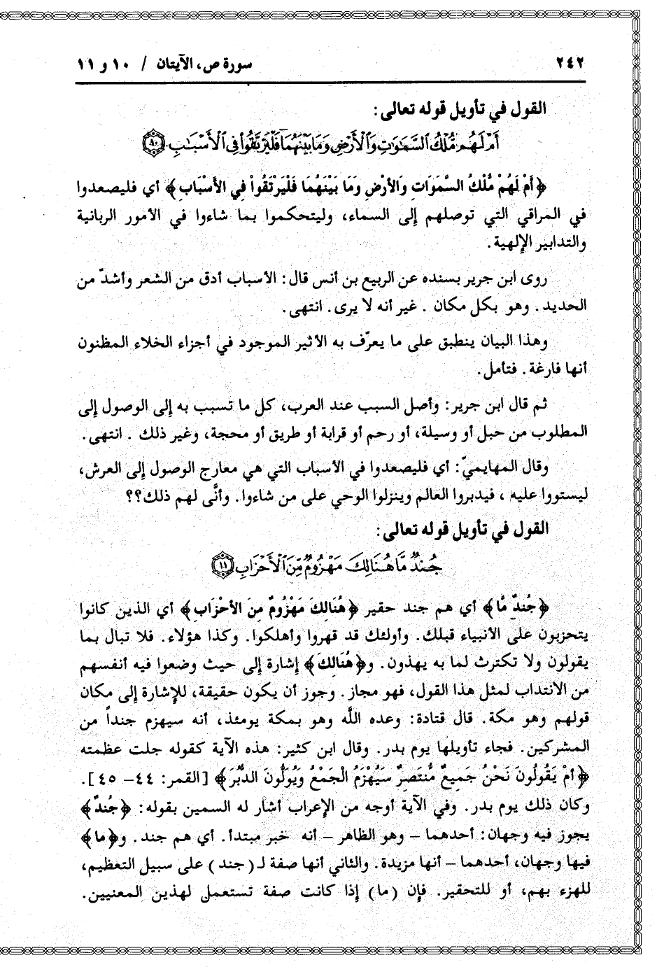 أَمْ لَهُمْ مُلْكُ السَّماواتِ وَالْأَرْضِ وَما بَيْنَهُما فَلْيَرْتَقُوا فِي الْأَسْبابِ أي فليصعدوا في المراقي التي توصلهم إلى السماء، وليتحكموا بما شاءوا في الأمور الربانية والتدابير الإلهية.