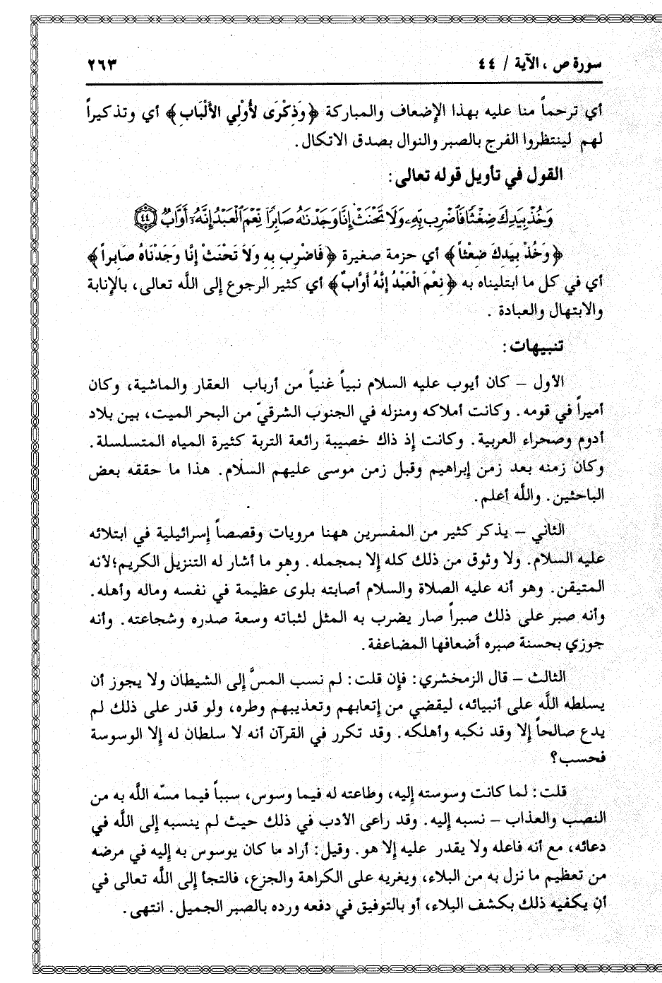 وَخُذْ بِيَدِكَ ضِغْثاً فَاضْرِبْ بِهِ وَلا تَحْنَثْ إِنَّا وَجَدْناهُ صابِراً نِعْمَ الْعَبْدُ إِنَّهُ أَوَّابٌ (44)