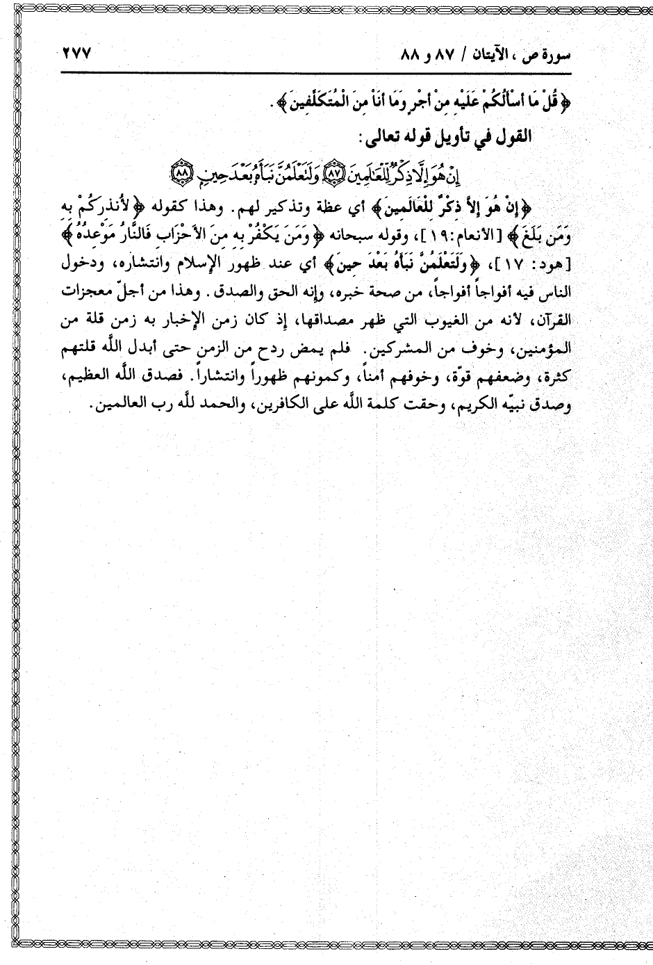 إِنْ هُوَ إِلاَّ ذِكْرٌ لِلْعالَمِينَ (87) وَلَتَعْلَمُنَّ نَبَأَهُ بَعْدَ حِينٍ (88)