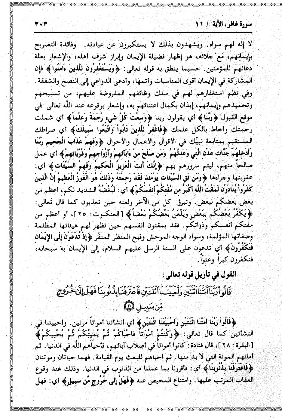 القول في تأويل قوله تعالى: [سورة غافر (40) : آية 11]