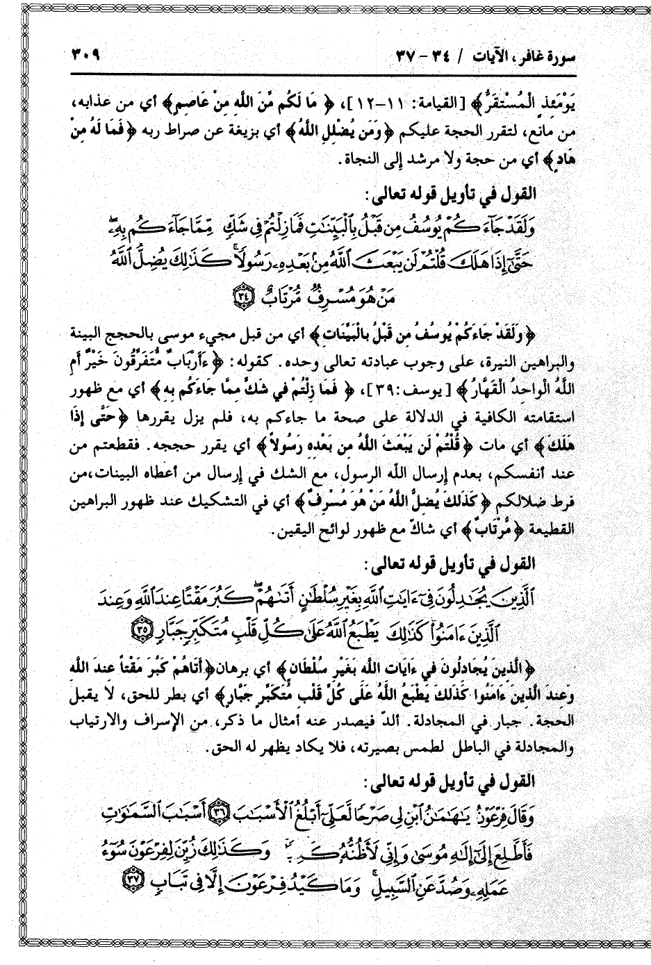 القول في تأويل قوله تعالى: [سورة غافر (40) : آية 34]