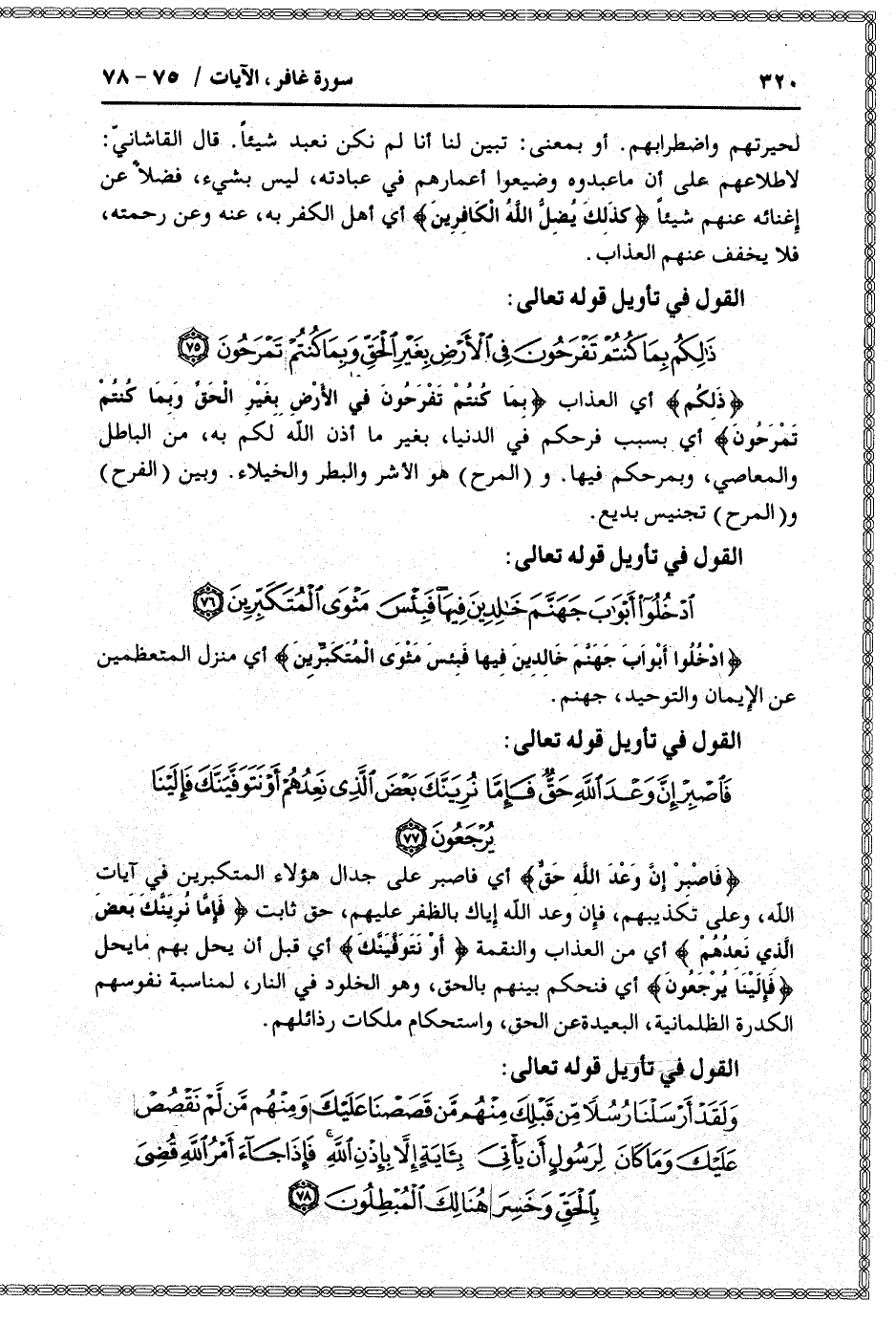القول في تأويل قوله تعالى: [سورة غافر (40) : آية 76]