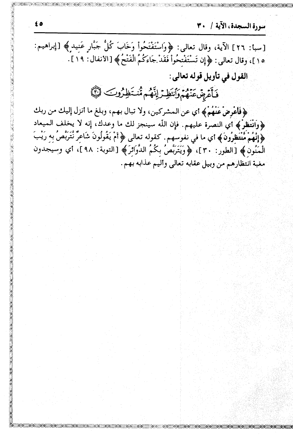القول في تأويل قوله تعالى: [سورة السجده (32) : آية 30]