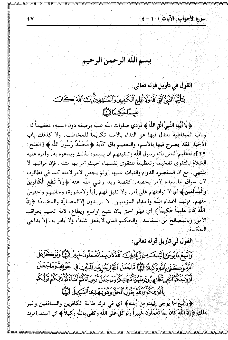 القول في تأويل قوله تعالى: [سورة الأحزاب (33) : آية 1]