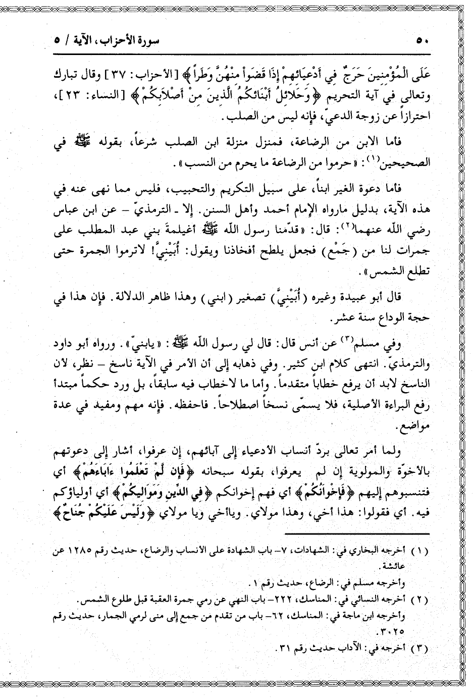 (1) أخرجه البخاري في: الشهادات، 7- باب الشهادة على الأنساب والرضاع، حديث رقم 1285 عن عائشة.