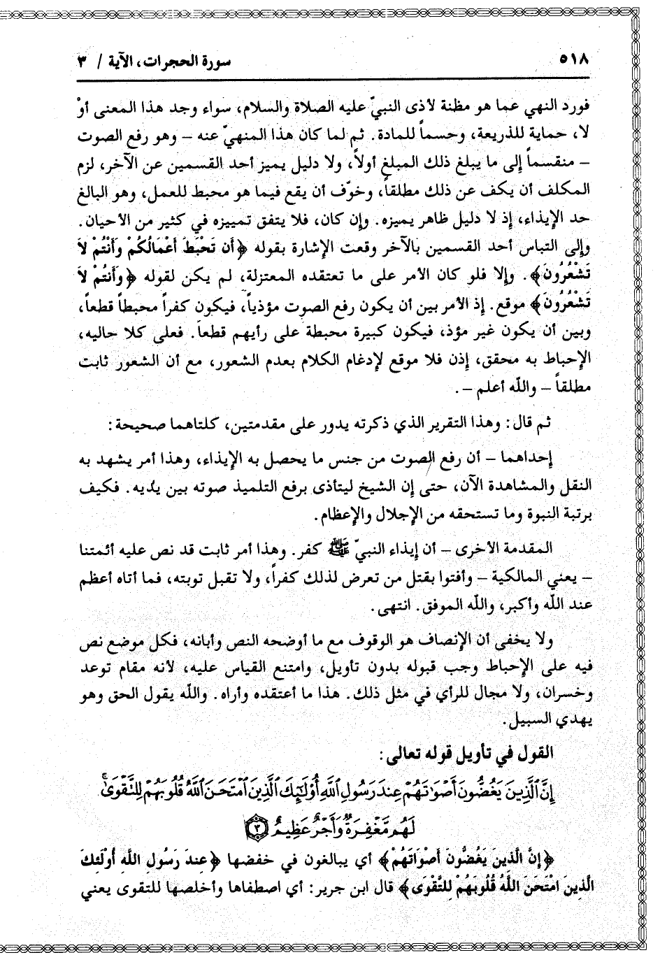 إِنَّ الَّذِينَ يَغُضُّونَ أَصْواتَهُمْ عِنْدَ رَسُولِ اللَّهِ أُولئِكَ الَّذِينَ امْتَحَنَ اللَّهُ قُلُوبَهُمْ لِلتَّقْوى لَهُمْ مَغْفِرَةٌ وَأَجْرٌ عَظِيمٌ (3)
