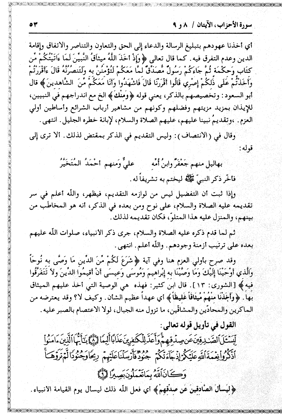 القول في تأويل قوله تعالى: [سورة الأحزاب (33) : الآيات 8 الى 9]