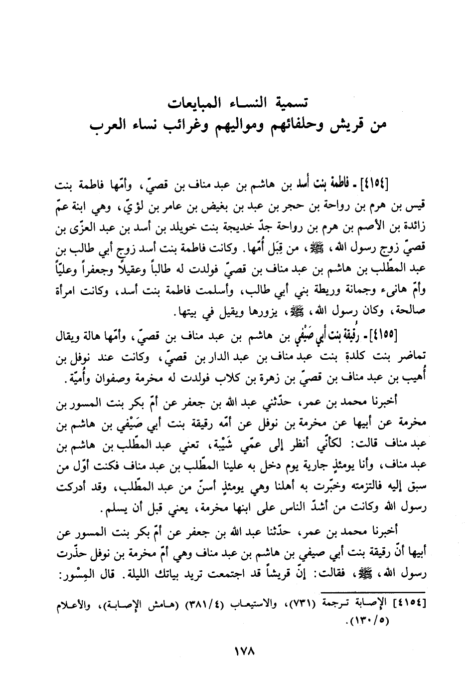 تسمية النساء الْمُبَايِعَاتِ مِنْ قُرَيْشٍ وَحُلَفَائِهِمْ وَمَوَالِيهِمْ وَغَرَائِبِ نِسَاءِ الْعَرَبِ