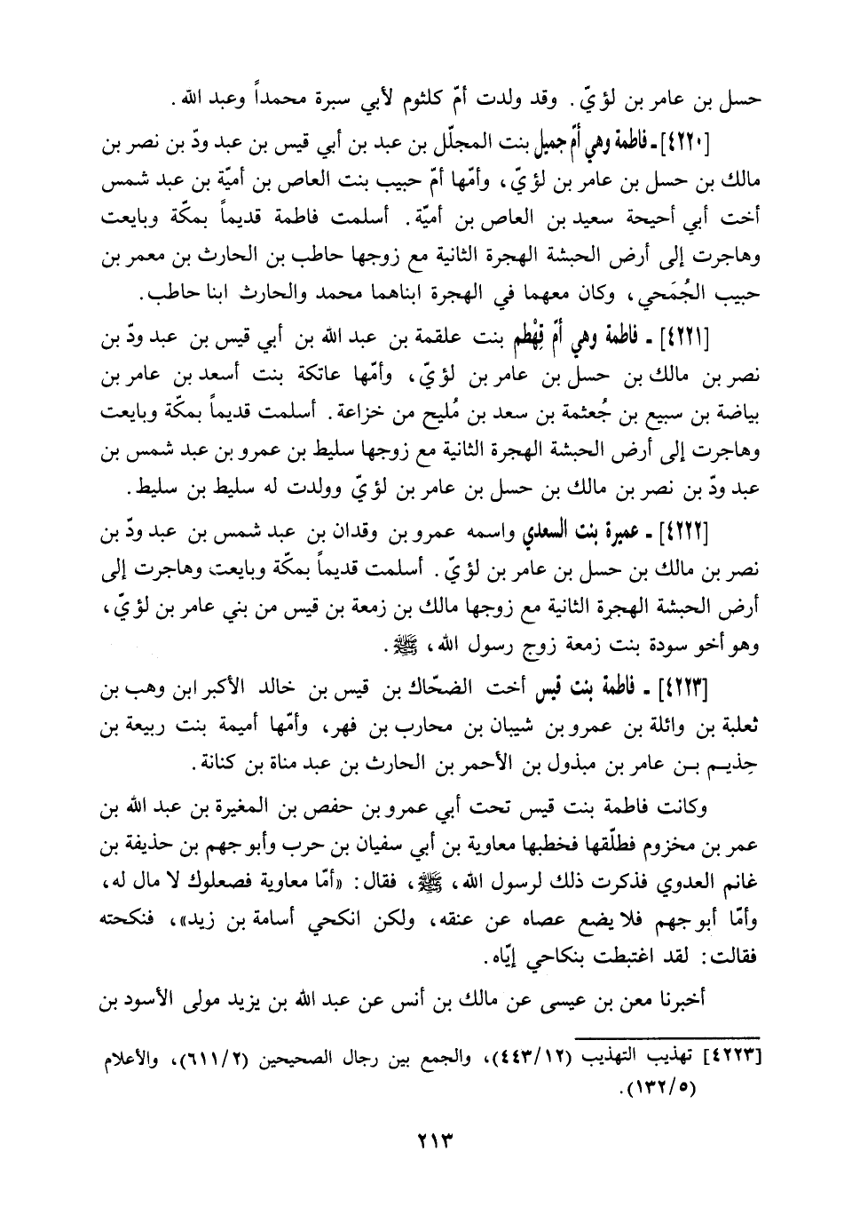 4223- فَاطِمَةَ بِنْتَ قَيْسٍ
