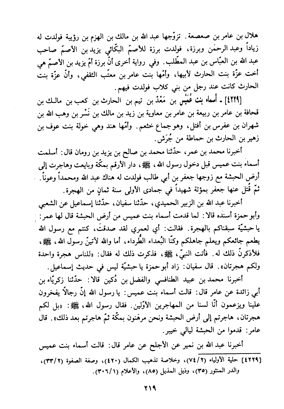 4229 حلية الأولياء (2/ 74) ، وخلاصة تذهيب الكمال (420) ، وصفة الصفوة (2/ 33) ، والدر المنثور (35) ، وذيل المذيل (85) ، والأعلام (1/ 306) .
