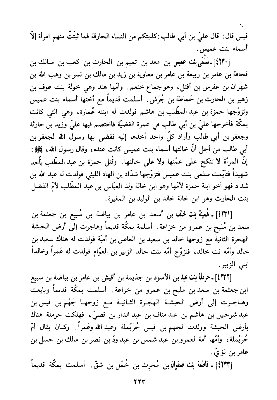 قَيْسٍ قَالَ: [قَالَ عَلِيُّ بْنُ أَبِي طَالِبٍ: كَذَّبَتْكُمْ مِنَ النِّسَاءِ الْحَارِقَةُ فَمَا ثَبَتَتْ مِنْهُمُ امْرَأَةٌ إِلا أَسْمَاءُ بِنْتُ عُمَيْسٍ.]