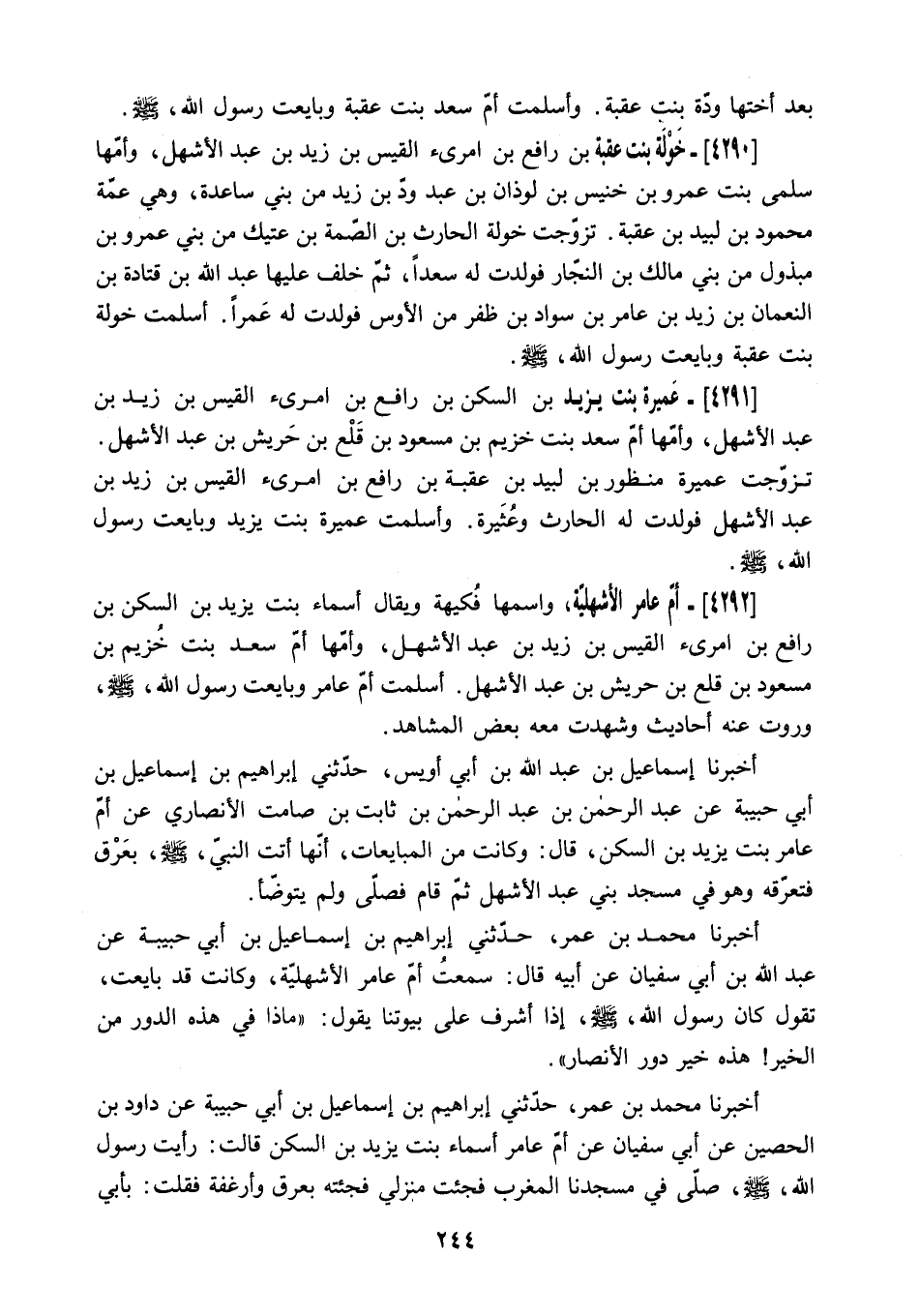 4292- أُمَّ عامر الأَشْهَلِيَّةُ.