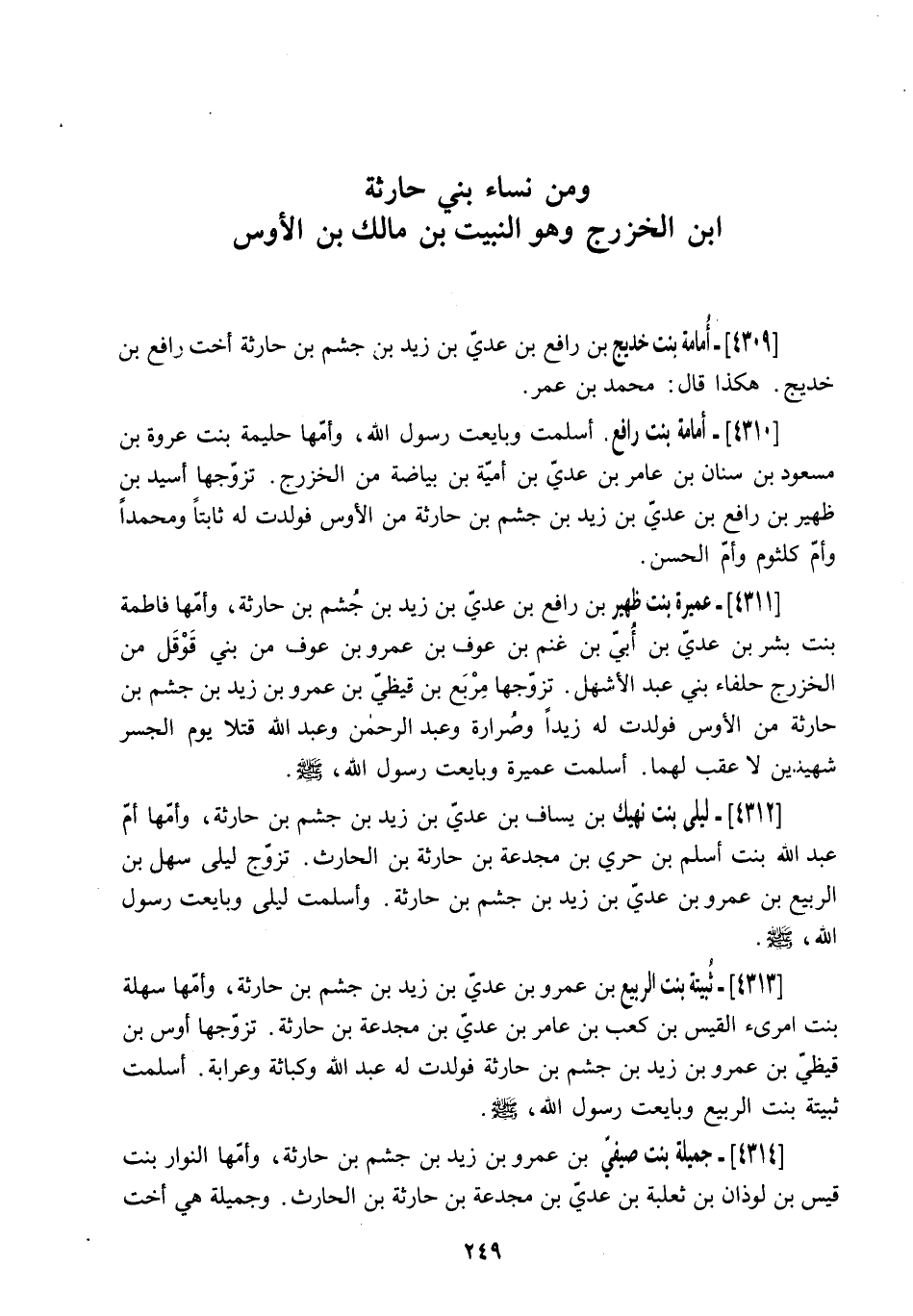 ومن نساء بني حارثة ابن الخزرج وهو النبيت بن مالك بن الأوس