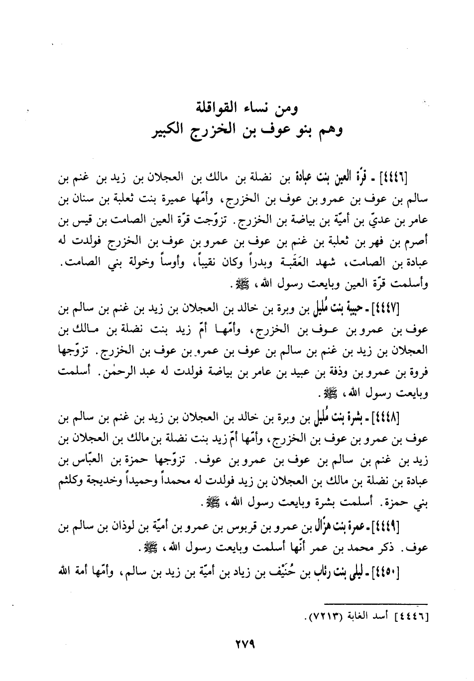 وَمِنْ نِسَاءِ الْقَوَاقِلَةِ وَهُمْ بَنُو عَوْفِ بْنِ الْخَزْرَجِ الْكَبِيرِ