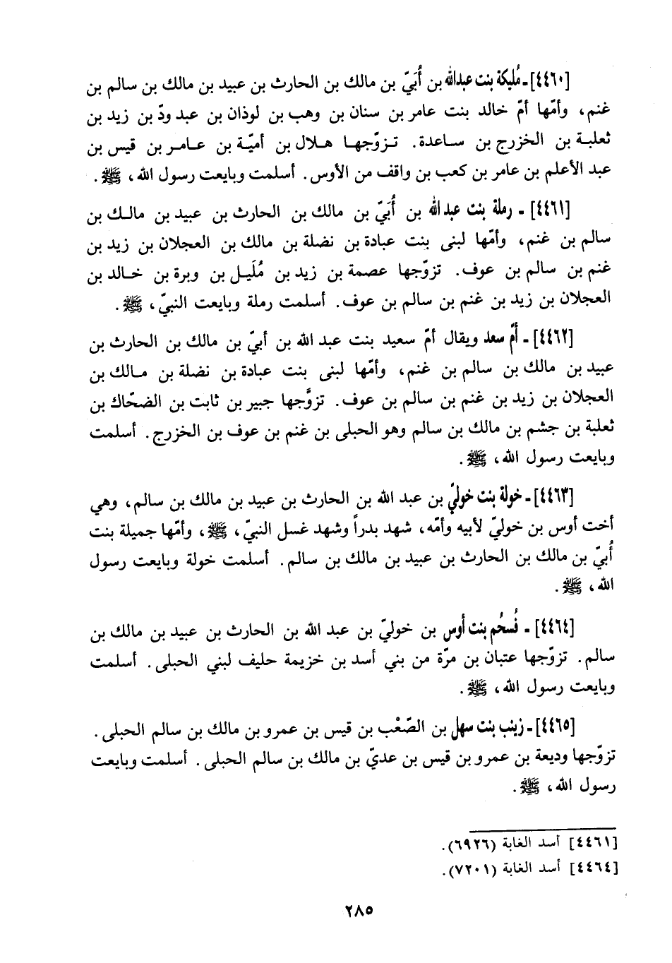 بْنُ خَوَلِيِّ بْنِ عَبْدِ اللَّهِ بْنِ الحارث بن عبيد بن مالك بن سالم. تزوجها عتبان بن مرة من بني أسد بن خزيمة حليف لبني الحبلى. أسلمت وبايعت رسول الله - صَلَّى اللَّهُ عَلَيْهِ وَسَلَّمَ -