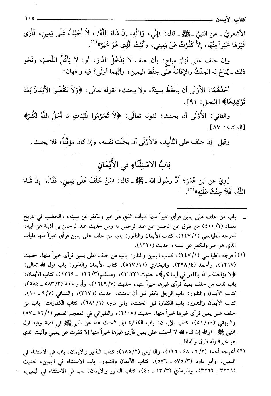 الأشعري- عن النبي- صلى الله عليه وسلم- قال: "إني، والله، إن شاء الله/، لا أحلف على يمين، فأرى غيرها خيراً منها، إلا كفرت عن يميني، وأتيت الذي هو خير".