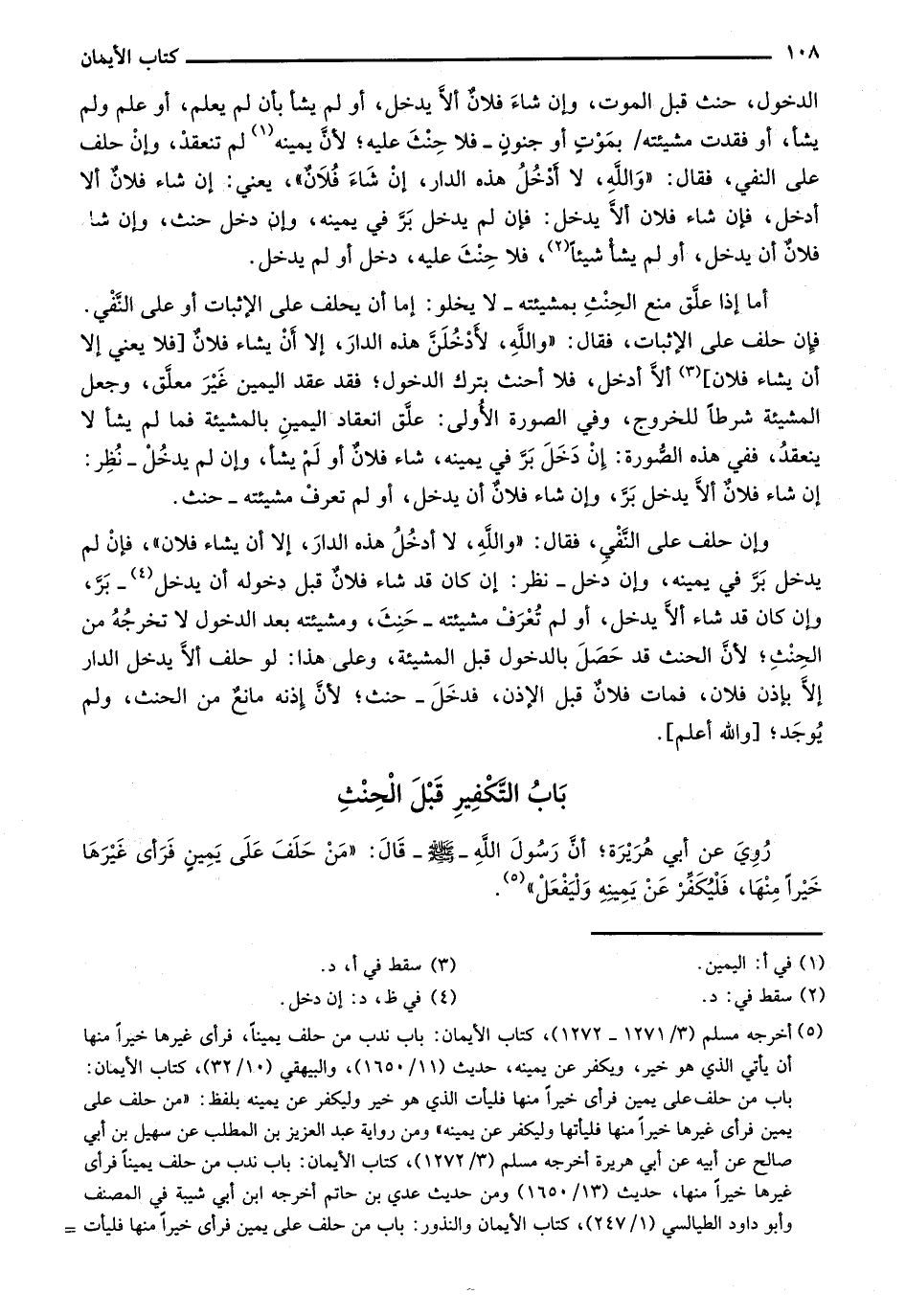 باب التكفير قبل الحنث.