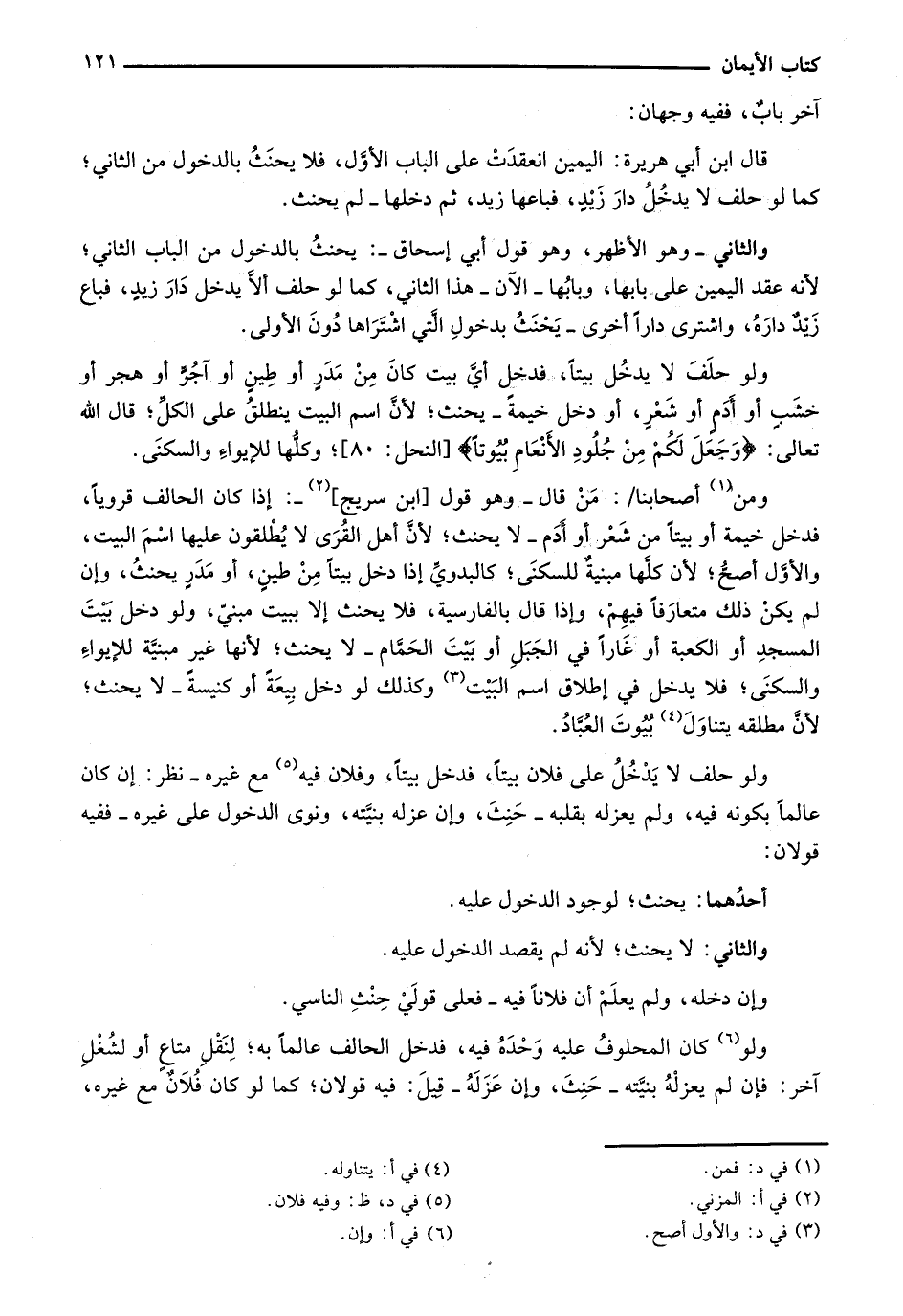 ومن أصحابنا/: من قال- وهو قول [ابن سريج]-: إذا كان الحالف قروياً، فدخل خيمة أو بيتاً من شعر أو أدم- لا يحنث؛ لأن أهل القرى لا يطلقون عليها اسم البيت، والأول أصح؛ لأن كلها مبنية للسكنى؛ كالبدوي إذا دخل بيتاً من طين، أو مدر يحنث، وإن لم يكن ذلك متعارفاً فيهم، وإذا قال بالفارسية، فلا يحنث إلا ببيت مبني، ولو دخل بيت المسجد أو الكعبة أو غاراً في الجبل أو بيت الحمام- لا يحنث؛ لأنها غير مبنية للإيواء والسكنى؛ فلا يدخل في إطلاق اسم البيت وكذلك لو دخل بيعة أو كنيسة- لا يحنث؛ لأن مطلقه يتناول بيوت العباد.