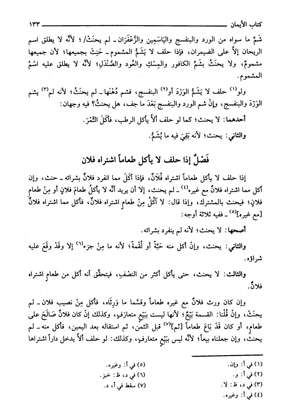 والثالث: لا يحنث، حتى يأكل أكثر من النصف، فيتحقق أنه أكل من طعام اشتراه فلان.
