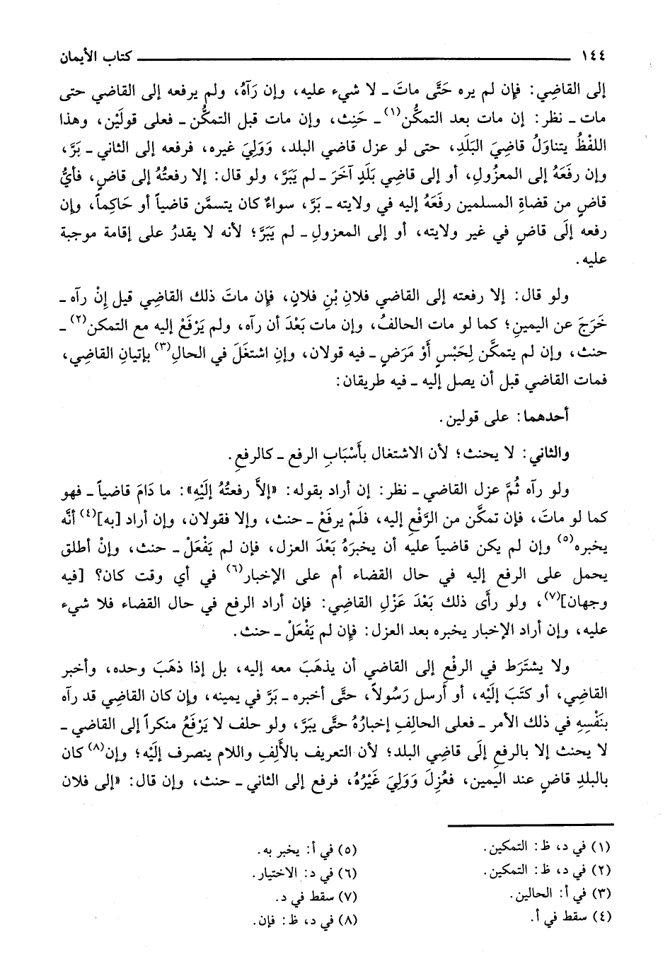 إلى القاضي: فإن لم يره حتى مات- لا شيء عليه، وإن رآه، ولم يرفعه إلى القاضي حتى مات- نظر: إن مات بعد التمكن- حنث، وإن مات قبل التمكن- فعلى قولين، وهذا اللفظ يتناول قاضي البلد، حتى لو عزل قاضي البلد، وولي غيره، فرفعه إلى الثاني- بر، وإن رفعه إلى المعزول، أو إلى قاضي بلد آخر- لم يبر، ولو قال: إلا رفعته إلى قاض، فأي قاض من قضاة المسلمين رفعه إليه في ولايته- بر، سواء كان يتسمن قاضياً أو حاكماً، وإن رفعه إلى قاض في غير ولايته، أو إلى المعزول- لم يبر؛ لأنه لا يقدر على إقامة موجبة عليه.