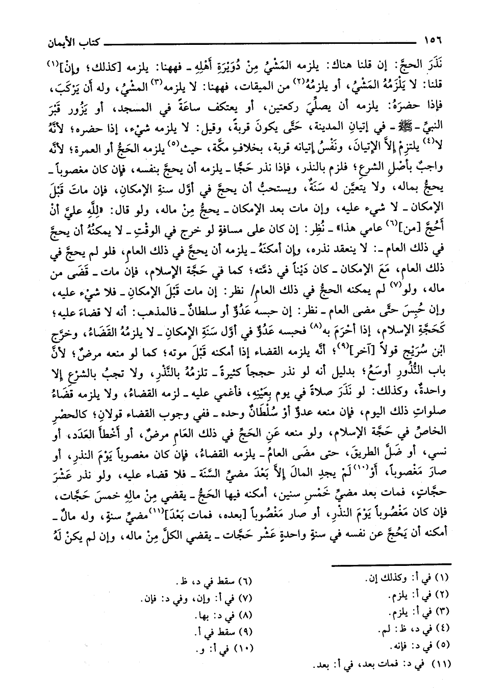 نذر الحج: إن قلنا هناك: يلزمه المشي من دويرة أهله- فههنا: يلزمه [كذلك؛ وإن] قلنا: لا يلزمه المشي، أو يلزمه من الميقات، فههنا: لا يلزمه المشي، وله أن يركب، فإذا حضره: يلزمه أن يصلي ركعتين، أو يعتكف ساعة في المسجد، أو يزور قبر النبي- صلى الله عليه وسلم- في إتيان المدينة، حتى يكون قربة، وقيل: لا يلزمه شيء، إذا حضره؛ لأنه لا يلتزم إلا الإتيان، ونفس إتيانه قربة، بخلاف مكة، حيث يلزمه الحج أو العمرة؛ لأنه واجب بأصل الشرع، فلزم بالنذر، فإذا نذر حجاً- يلزمه أن يحج بنفسه، فإن كان مغصوباً- يحج بماله، ولا يتعين له سنة، ويستحب أن يحج في أول سنة الإمكان، فإن مات قبل الإمكان- لا شيء عليه، وإن مات بعد الإ/كان- يحج من ماله، ولو قال: "لله علي أن أحج [من] عامي هذا"- نظر: إن كان على مسافة لو خرج في الوقت- لا يمكنه أن يحج في ذلك العام- لا ينعقد نذره، وإن أمكنه- يلزمه أن يحج في ذلك العام، فلو لم يحج في ذلك العام، مع الإمكان- كان ديناً في ذمته؛ كما في حجة الإسلام، فإن مات- قضى من ماله، ولو لم يمكنه الحج في ذلك العام/ نظر: إن مات قبل الإمكان- فلا شيء عليه، وإن حبس حتى مضى العام- نظر: إن حبسه عدو أو سلطان - فالمذهب: أنه لا قضاء عليه؛ كحجة الإسلام، إذا أحرم به فحبسه عدو في أول سنة الإمكان- لا يلزمه القضاء، وخرج ابن سريج قولاً [آخر]؛ أنه يلزمه القضاء إذا أمكنه قبل موته؛ كما لو منعه مرض؛ لأن باب النذور أوسع؛ بدليل أنه لو نذر حججاً كثيرة- تلزمه بالنذر، ولا تجب بالشرع إلا واحدة، وكذلك: لو نذر صلاة في يوم بعينه، فأغمي عليه- لزمه القضاء، ولا يلزمه قضاء صلوات ذلك اليوم، فإن منعه عدو أو سلطان وحده- ففي وجوب القضاء قولان؛ كالحصر الخاص في حجة الإسلام، ولو منعه عن الحج في ذلك العام مرض، أو أخطأ العدد، أو نسي، أو ضل الطريق، حتى مضى العام- يلزمه القضاء، فإن كان مغصوباً يوم النذر، أو صار مغصوباً، أو لم يجد المال إلا بعد مضي السنة- فلا قضاء عليه، ولو نذر عشر حجات، فمات بعد مضي خمس سنين، أمكنه فيها الحج- يقضي من ماله خمس حجات، فإن كان مغصوباً يوما لنذر، أو صار مغصوباً [بعده، فمات بعد] مضي سنة، وله مال- أمكنه أن يحج عن نفسه في سنة واحدة عشر حجات- يقضي الكل من ماله، وإن لم يكن له