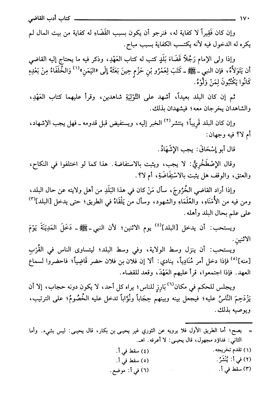وإذا أراد القاضي الخروج، سأل من كان في هذا البلد من أهل ولايته عن حال البلد، على علم بحال البلد وأهله.