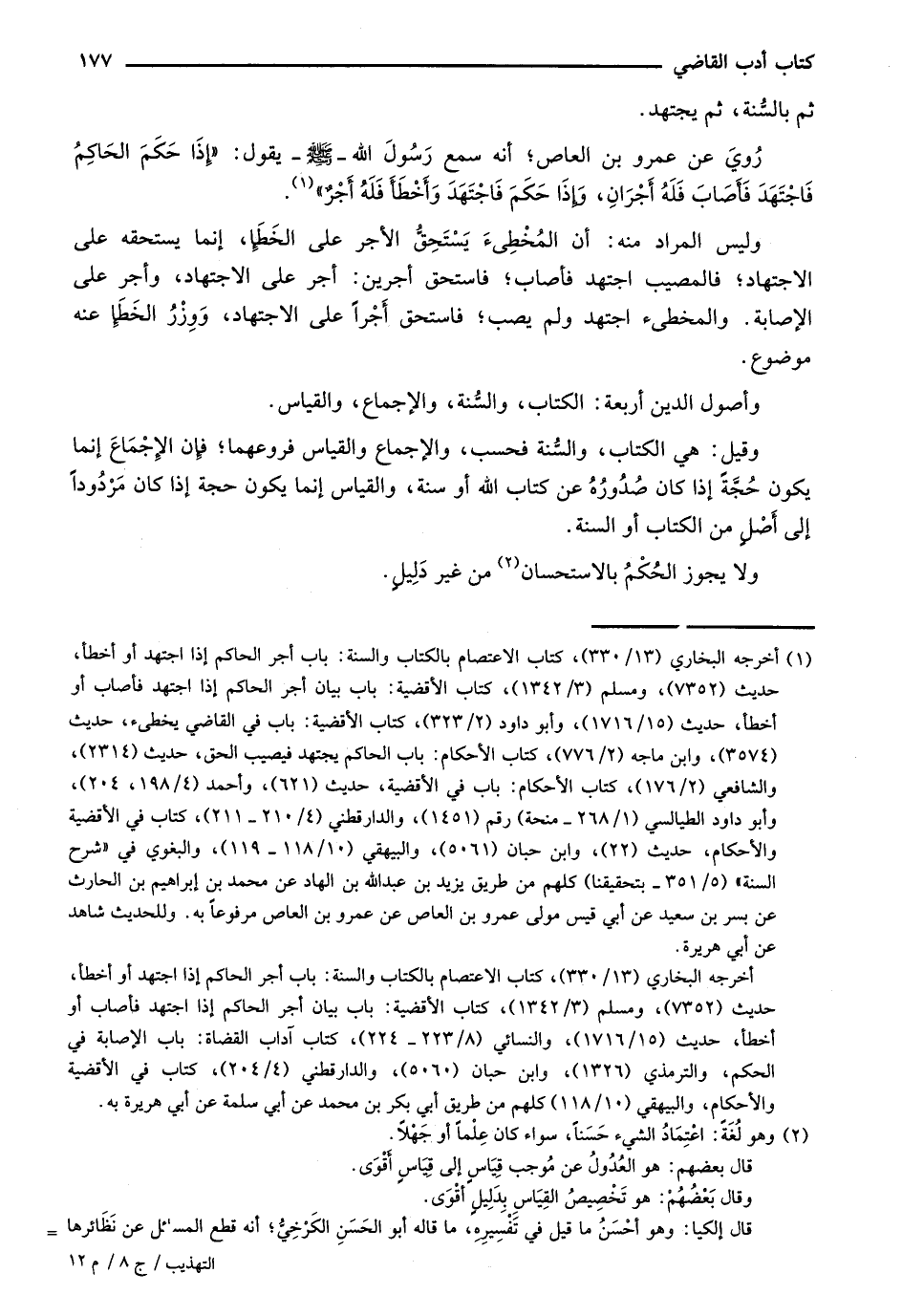 روي عن عمرو بن العاص؛ أنه سمع رسول الله -صلى الله عليه وسلم- يقول: "إذا حكم الحاكم فاجتهد فأصاب فله أجران، وإذا حكم فاجتهد وأخطأ فله أجر".