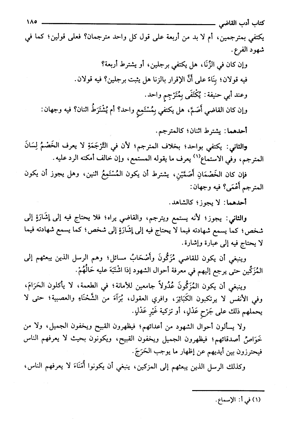 وينبغي أن يكون للقاضي مزكون وأصحاب مسائل؛ وهم الرسل الذين يبعثهم إلى المزكين حتى يرجع إليهم في معرفة أحوال الشهود إذا اشتبه عليه حالهم.