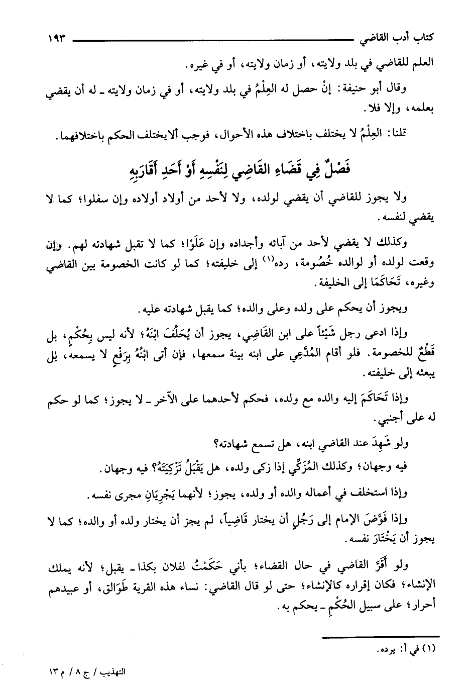 فصل في قضاء القاضي لنفسه أو أحد أقاربه